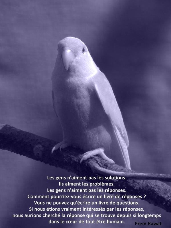Les gens n'aiment pas les solutions. Ils aiment les problèmes. Les gens n'aiment pas les réponses. Comment pourriez-vous écrire un livre de réponses ? Vous ne pouvez qu'écrire un livre de questions. Si nous étions vraiment intéressés par les réponses, nous aurions cherché la réponse qui se trouve depuis si longtemps dans le cœur de tout être humain.