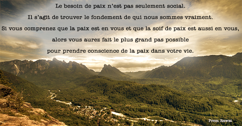 Le besoin de paix n’est pas seulement social. Il s’agit de trouver le fondement de qui nous sommes vraiment. Si vous comprenez que la paix est en vous et que la soif de paix est aussi en vous, alors vous aurez fait le plus grand pas possible pour prendre conscience de la paix dans votre vie.