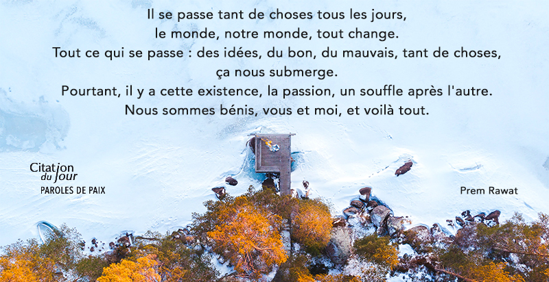 Il se passe tant de choses tous les jours, le monde, notre monde, tout change. Tout ce qui se passe : des idées, du bon, du mauvais, tant de choses, ça nous submerge. Pourtant, il y a cette existence, la passion, un souffle après l'autre. Nous sommes bénis, vous et moi, et voilà tout.