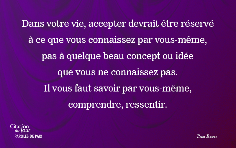 Il vous faut savoir par vous-même, comprendre, ressentir.
