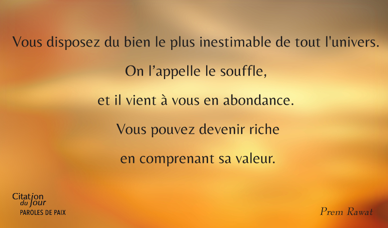 Vous disposez du bien le plus inestimable de tout l'univers.