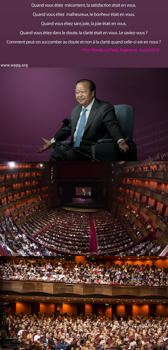 Quand vous étiez mécontent, la satisfaction était en vous. Quand vous étiez malheureux, le bonheur était en vous. Quand vous étiez sans joie, la joie était en vous. Quand vous étiez dans le doute, la clarté était en vous. Le saviez-vous ? Comment peut-on succomber au doute et non à la clarté quand celle-ci est en nous ?