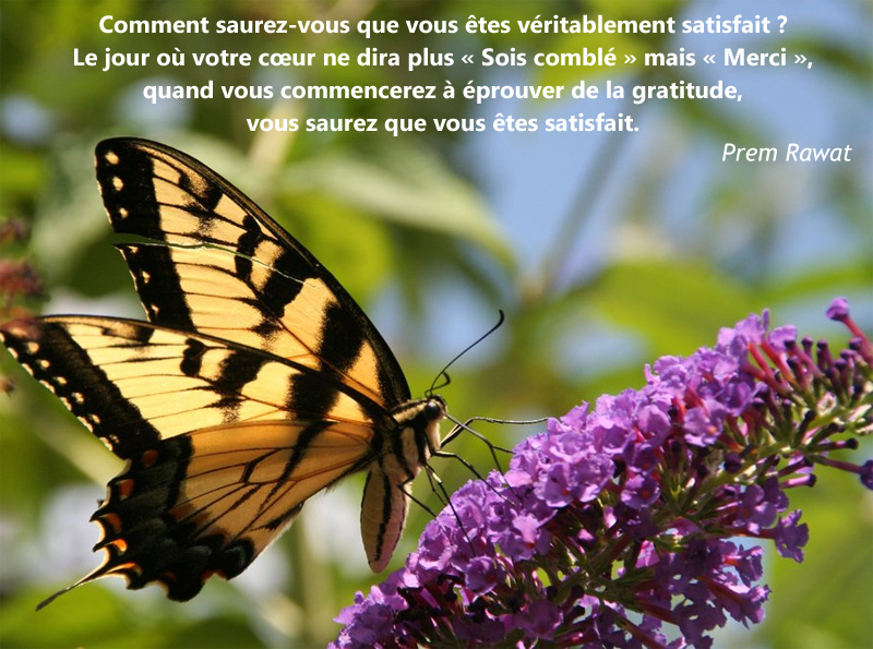 Le jour où votre cœur ne dira plus « Sois comblé » mais « Merci », quand vous commencerez à éprouver de la gratitude, vous saurez que vous êtes satisfait.