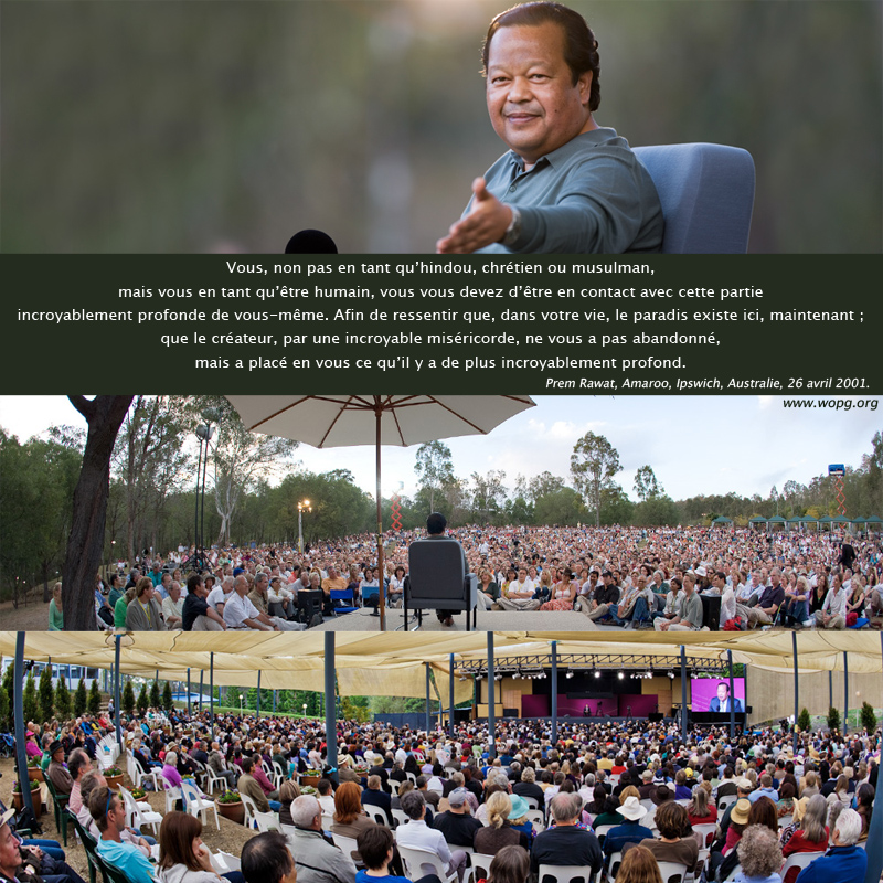 Vous, non pas en tant qu’hindou, chrétien ou musulman, mais vous en tant qu’être humain, vous vous devez d’être en contact avec cette partie incroyablement profonde de vous-même. Afin de ressentir que, dans votre vie, le paradis existe ici, maintenant ; que le créateur, par une incroyable miséricorde, ne vous a pas abandonné, mais a placé en vous ce qu’il y a de plus incroyablement profond.