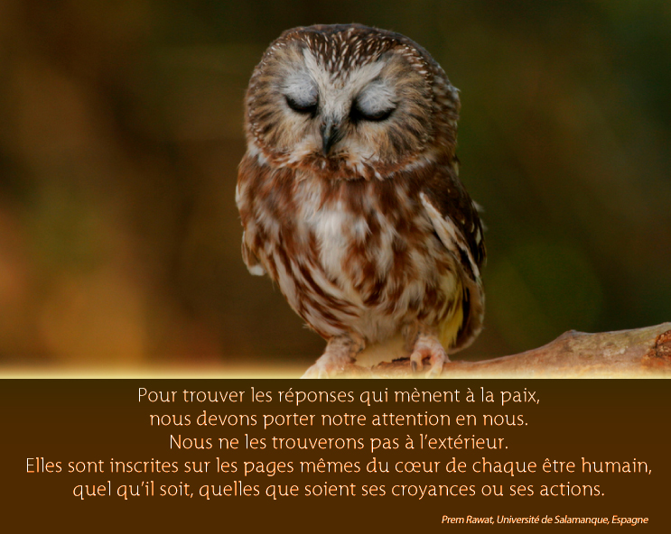 Pour trouver les réponses qui mènent à la paix, nous devons porter notre attention en nous. Nous ne les trouverons pas à l’extérieur. Elles sont inscrites sur les pages mêmes du cœur de chaque être humain, quel qu’il soit, quelles que soient ses croyances ou ses actions.