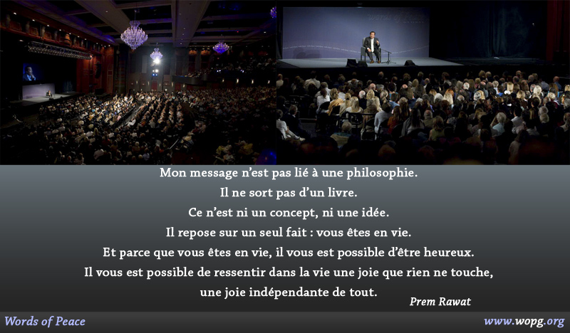 Mon message n’est pas lié à une philosophie. Il ne sort pas d’un livre. Ce n’est ni un concept, ni une idée. Il repose sur un seul fait : vous êtes en vie. Et parce que vous êtes en vie, il vous est possible d’être heureux. Il vous est possible de ressentir dans la vie une joie que rien ne touche, une joie indépendante de tout.