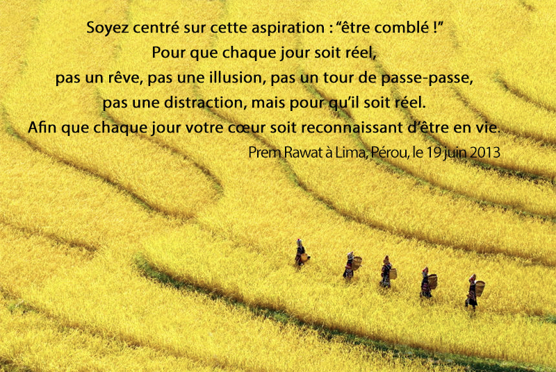 Soyez centré sur cette aspiration : « être comblé ! » Pour que ce soit vrai chaque jour, pas un rêve, pas une illusion, pas un tour de passe-passe, pas une distraction, mais pour qu’il soit réel. Afin que chaque jour votre cœur soit reconnaissant d’être en vie.