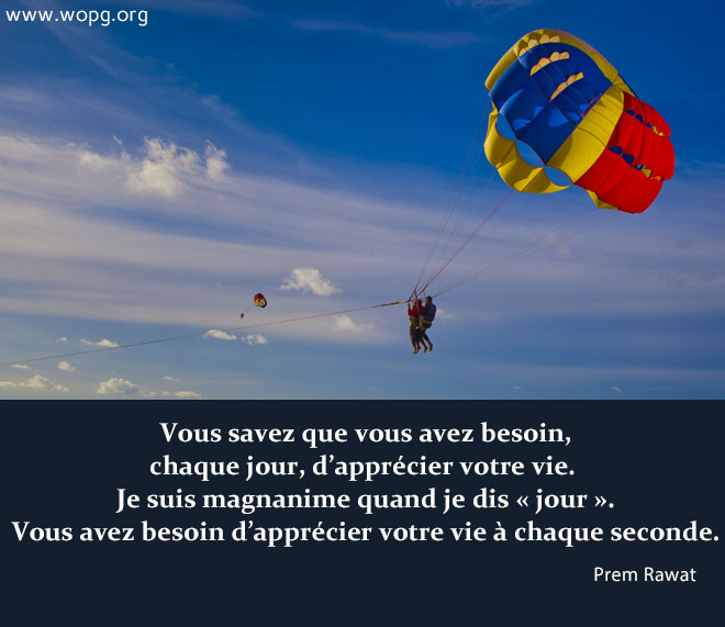 Vous avez besoin d’apprécier votre vie à chaque seconde.