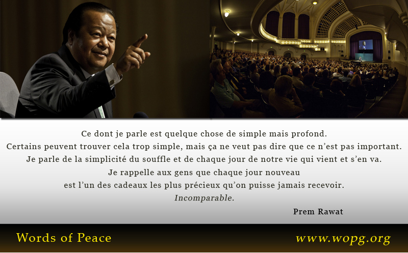 Ce dont je parle est quelque chose de simple mais profond. Certains peuvent trouver cela trop simple, mais ça ne veut pas dire que ce n’est pas important. Je parle de la simplicité du souffle et de chaque jour de notre vie qui vient et s’en va. Je rappelle aux gens que chaque jour nouveau est l’un des cadeaux les plus précieux qu’on puisse jamais recevoir. Incomparable.