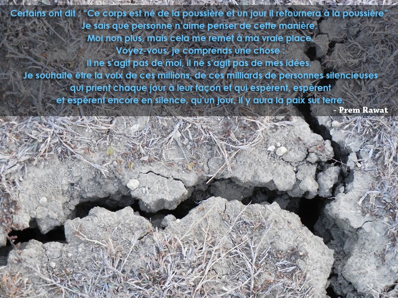 Certains ont dit : “Ce corps est né de la poussière et un jour il retournera à la poussière”. Je sais que personne n’aime penser de cette manière. Moi non plus, mais cela me remet à ma vraie place. Voyez-vous, je comprends une chose : il ne s’agit pas de moi, il ne s’agit pas de mes idées. Je souhaite être la voix de ces millions, de ces milliards de personnes silencieuses qui prient chaque jour à leur façon et qui espèrent, espèrent et espèrent encore en silence, qu'un jour, il y aura la paix sur terre.