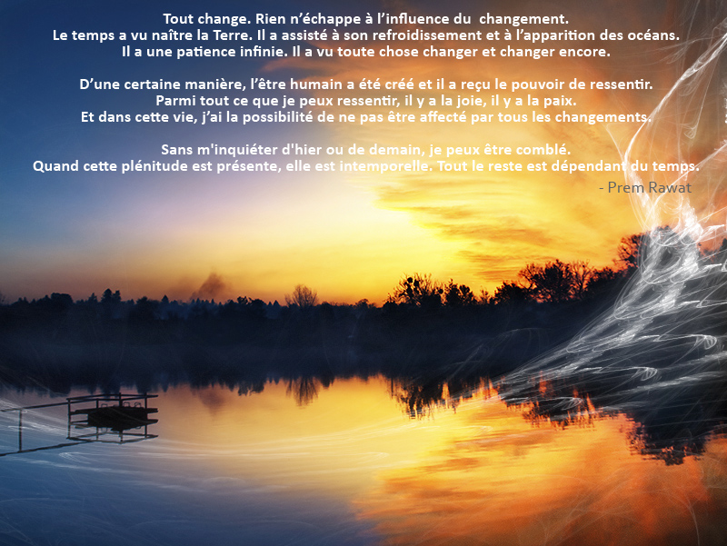 Sans m'inquiéter d'hier ou de demain, je peux être comblé. Quand cette plénitude est présente, elle est intemporelle. Tout le reste est dépendant du temps.