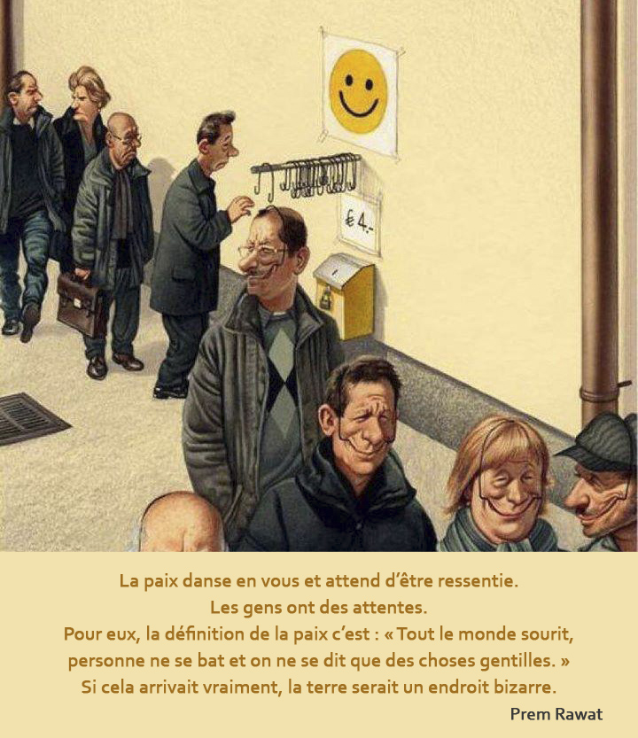 La paix danse en vous et attend d’être ressentie. Les gens ont des attentes. Pour eux, la définition de la paix c’est : « Tout le monde sourit, personne ne se bat et on ne se dit que des choses gentilles. » Si cela arrivait vraiment, la terre serait un endroit bizarre.