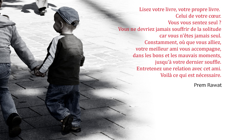 Lisez votre livre, votre propre livre. Celui de votre cœur. Vous vous sentez seul ? Vous ne devriez jamais souffrir de la solitude car vous n’êtes jamais seul. Constamment, où que vous alliez, votre meilleur ami vous accompagne, dans les bons et les mauvais moments, jusqu’à votre dernier souffle. Entretenez une relation avec cet ami. Voilà ce qui est nécessaire.